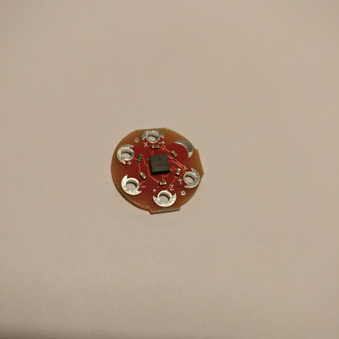 Kolmen akselin AXDL335 MEMS -pohjainen kiihtyvyysanturi. Halkaisija 20mm.